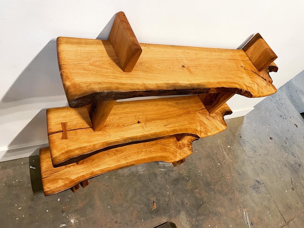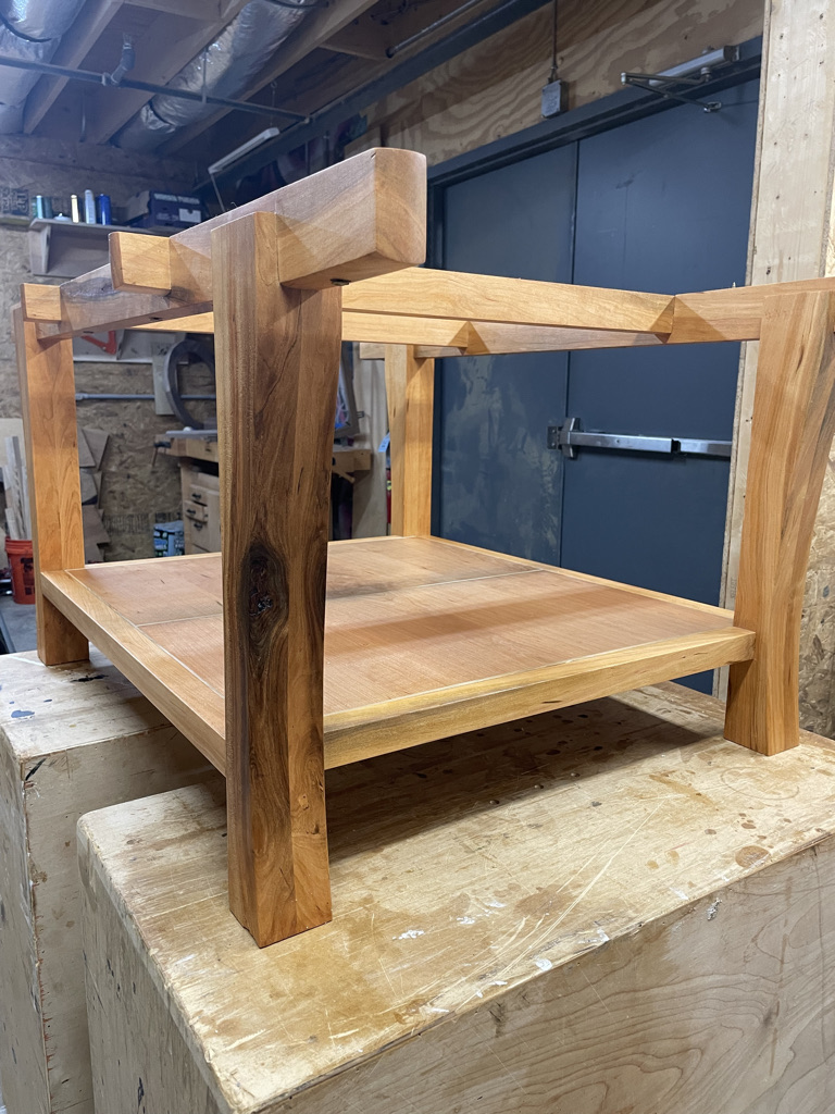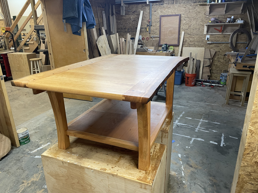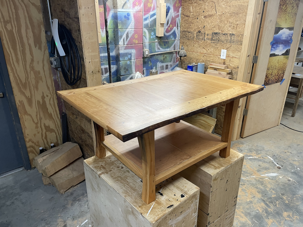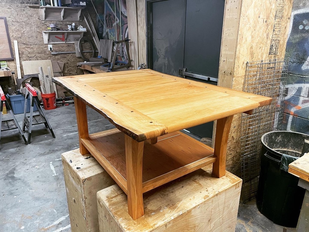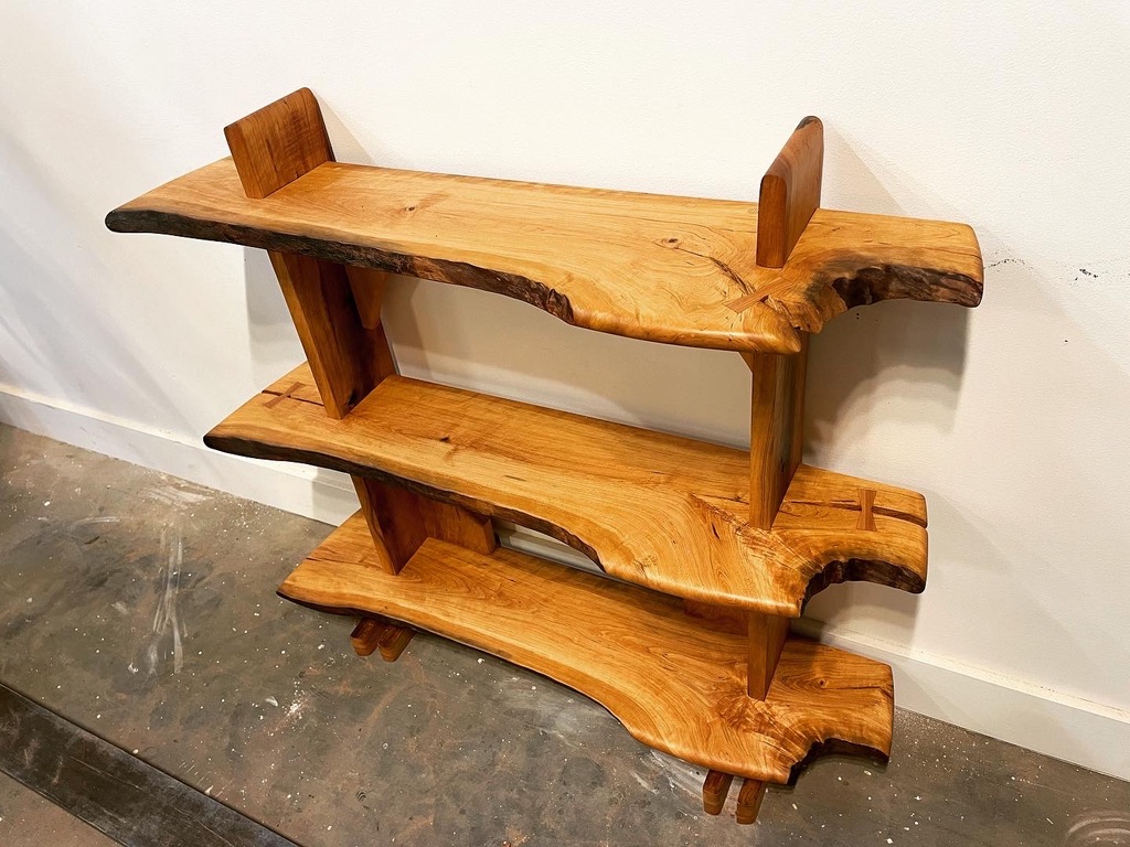 When the Johnson family moved into their new home, they discovered a cherry tree in their yard that had fallen and died. Recognizing the potential of this natural resource, they brought the lumber to me, seeking to transform it into something beautiful and functional. Together, we collaborated to design a bespoke coffee table and multiple shelves. This project was more than just woodworking; it was about honoring the life of the tree and giving it a new purpose within their home. The transformation of the tree from the backyard to cherished home furnishings in the family room stands as a testament to the value of bespoke craftsmanship and the meaningful stories that such projects can tell.