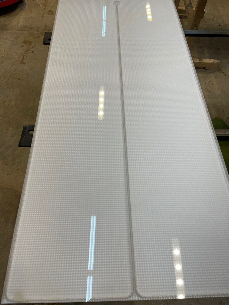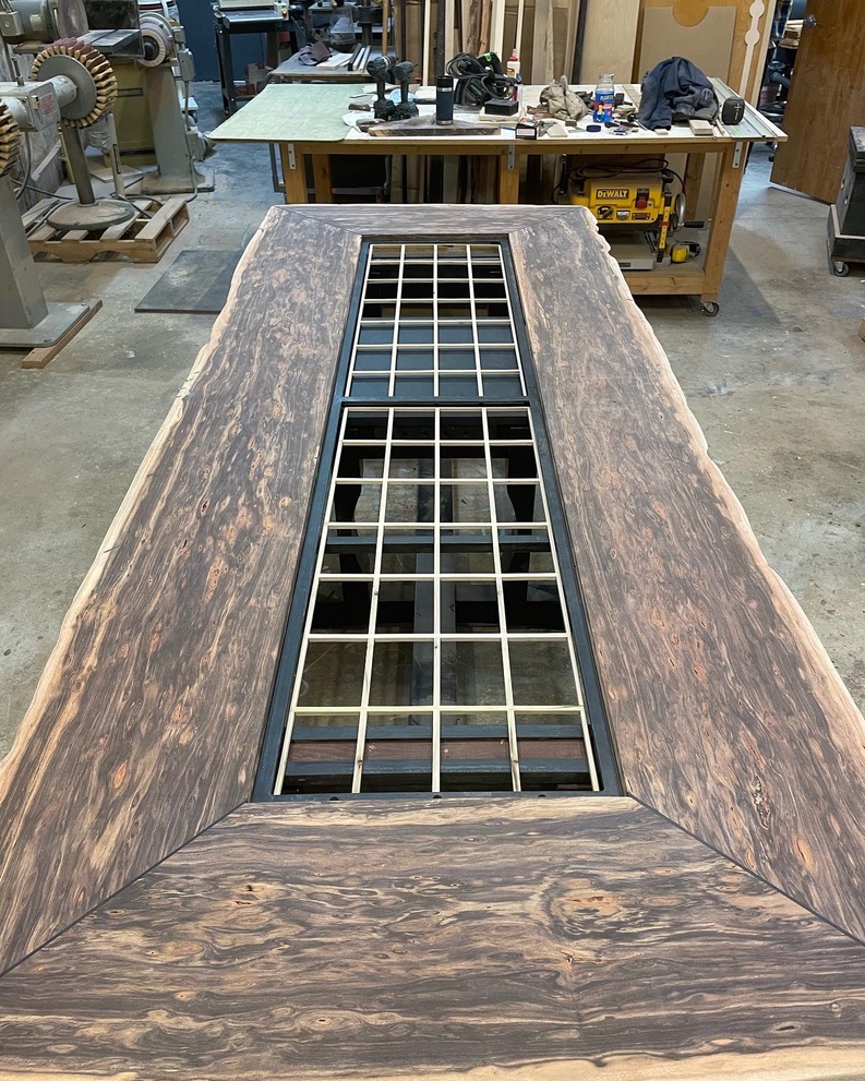 As the elements came together, the table’s weight and structural integrity became a concern. Collaborating with a local welder, we designed a steel frame that harmoniously integrated the lights, glass, and wood. Watching the pieces fit together was a series of amazing moments, each one a testament to the collaborative effort and creative problem-solving that defined the project.